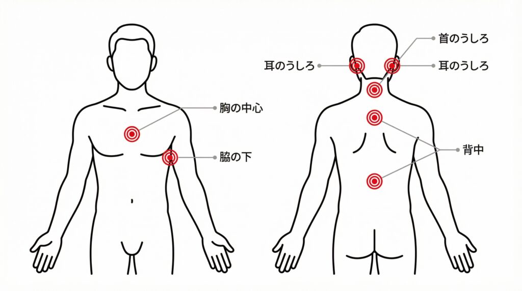 特に耳の後ろ・首筋・背中の中央は、自分ではあまり意識していないのにニオイが出やすい場所です。シャワーのたびに、「今日はここを重点的に洗おう」と意識するだけでも体臭はかなり変わります。