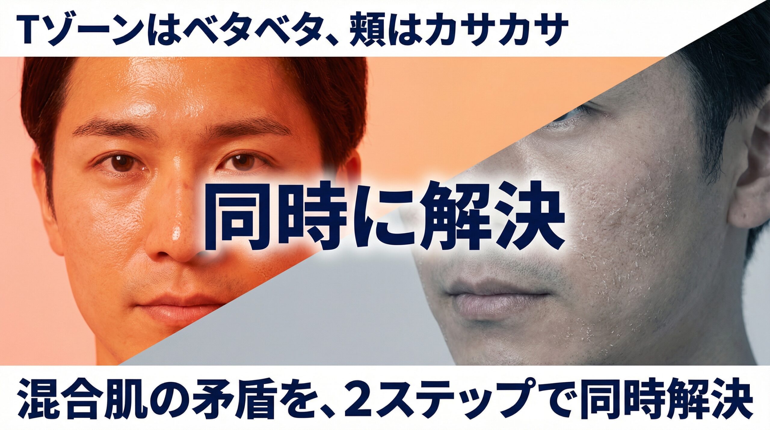 この矛盾した悩み、実はあなただけではありません。日本人男性の約70%が「混合肌」だと言われています。つまり、10人中7人が同じ悩みを抱えているのです。