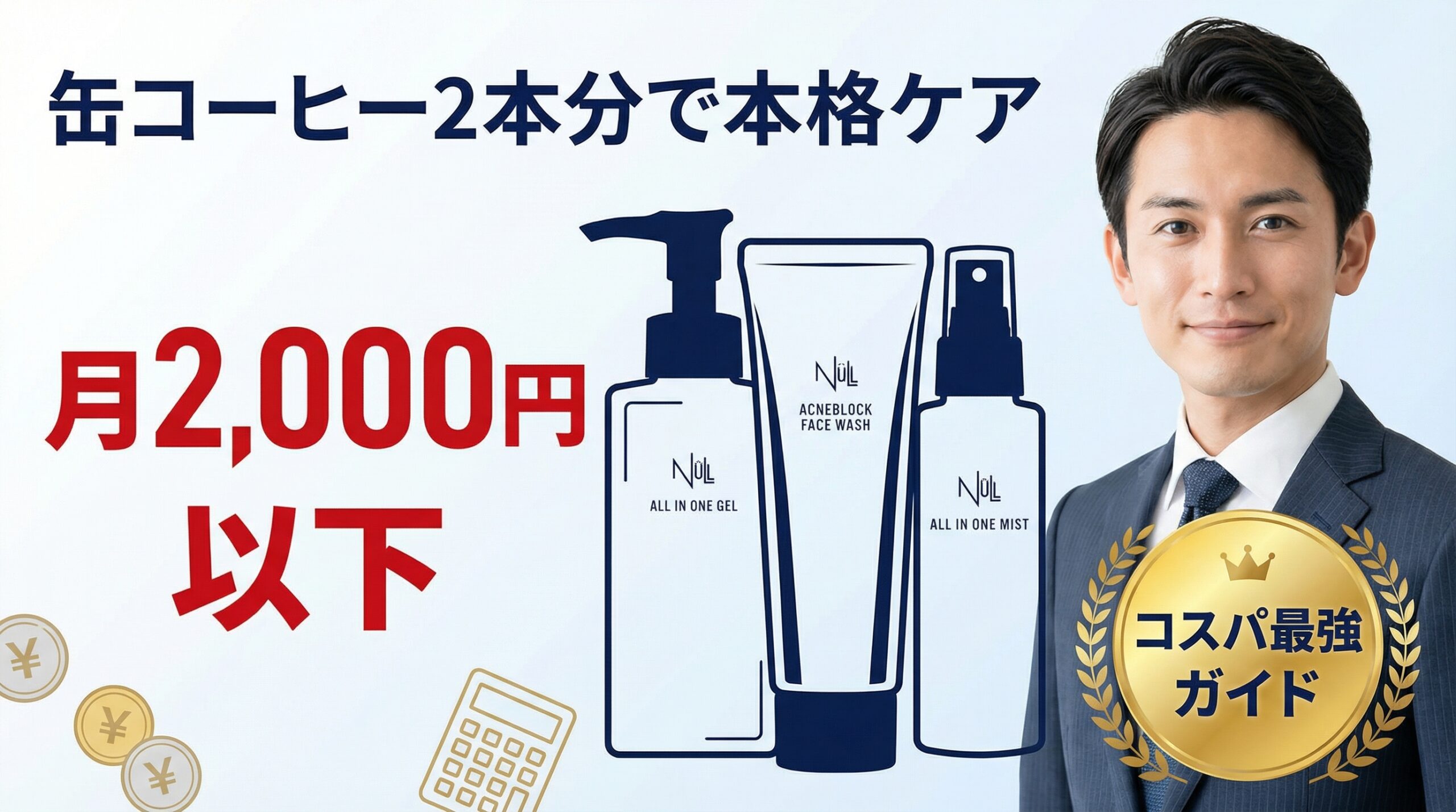 「スキンケアを始めたいけど、毎月5,000円も払えない…」「安い商品じゃ効果がないんじゃないか?」そんな悩みを抱えている30〜40代男性は非常に多いです。
