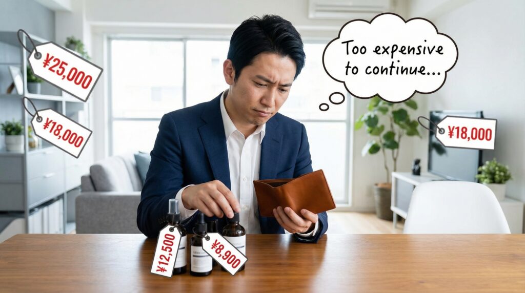 高価な商品ほど、なくなったときの再購入ハードルが高くなります。「今月は厳しいから来月にしよう」と先延ばしにし、結局スキンケア自体をやめてしまう典型的な失敗パターンです。