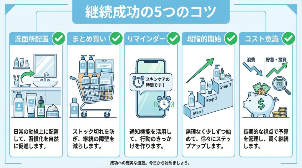 コスパスキンケアを「継続させる」5つの実践的コツ